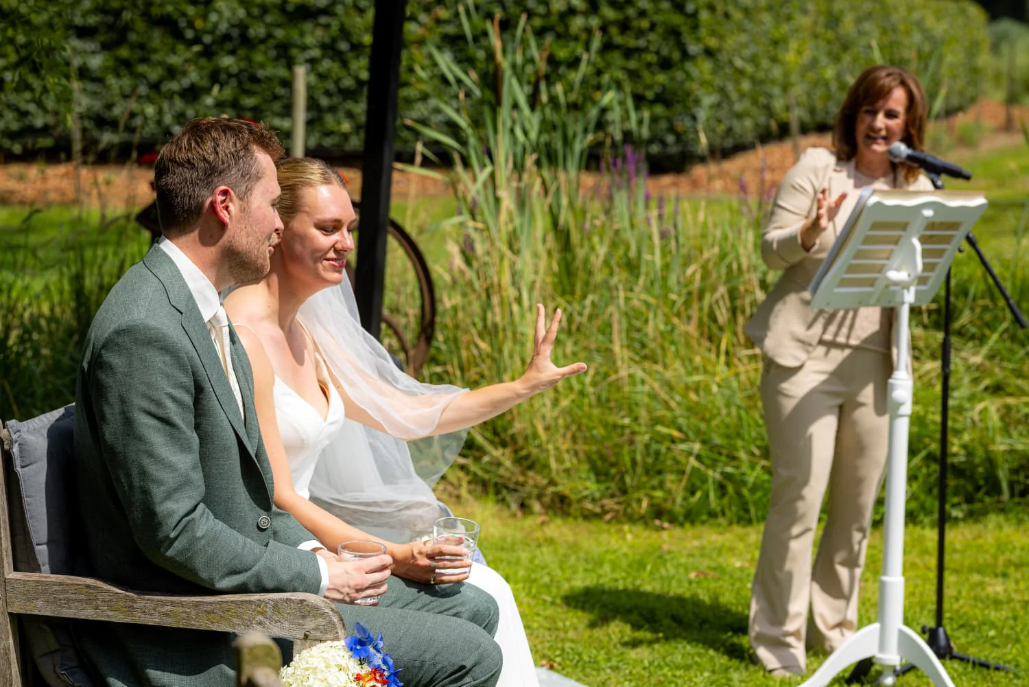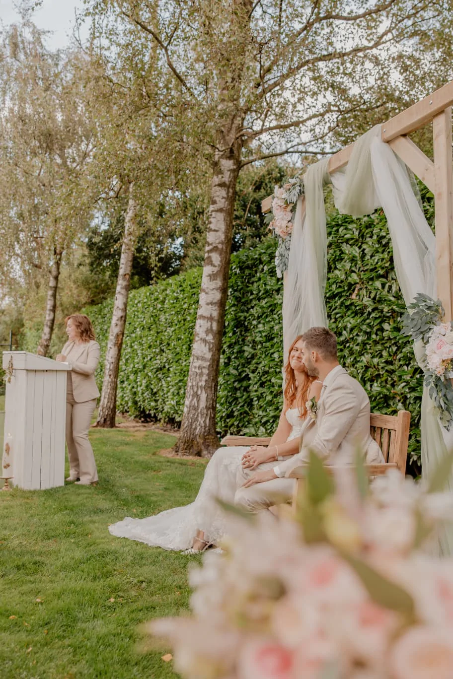 We hadden tijdens het kennismakingsgesprek met Babs Jessica meteen een klik en zelfs ons hondje was gek op haar! Onze afspraken waren altijd erg gezellig en je merkt aan Jessica dat ze het echt leuk vindt om te doen. Ze is heel betrokken en behulpzaam, ook als een andere leverancier plotseling uitvalt. En het belangrijkste: ze heeft alle input, zowel vanuit ons als vanuit onze omgeving, verwerkt in een fantastische en persoonlijke speech met een lach en een traan. We hebben dan ook van veel gasten te horen gekregen dat ze de ceremonie zo leuk vonden!