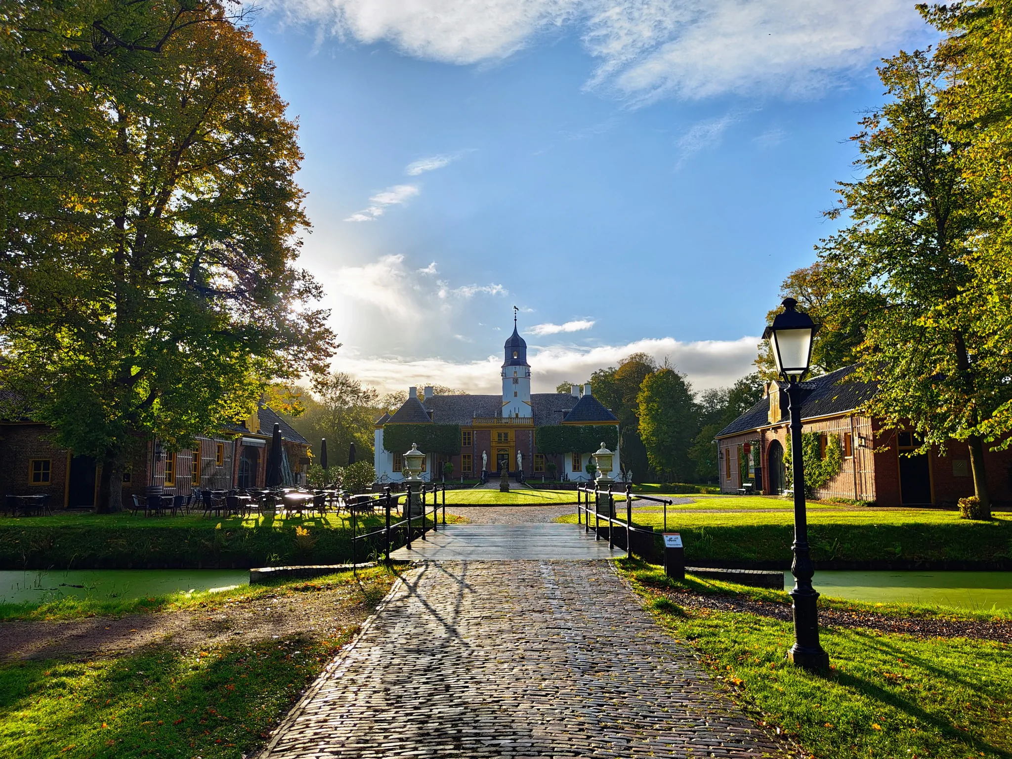 Prachtige locatie. Om te picknicken, feestje vieren, een trouwerij of gewoon ffe om te wandelen langs de meest romantische plekjes. Daarna wordt je warm opgevangen door het personeel in het koetshuis waar je op het terras kan zitten of lekker warm binnen bij de openhaard...en de lunchkaart is compleet en niet te versmaden. Zeer vriendelijk personeel😄. Ik hou ervan!! 👍🏼👍🏼