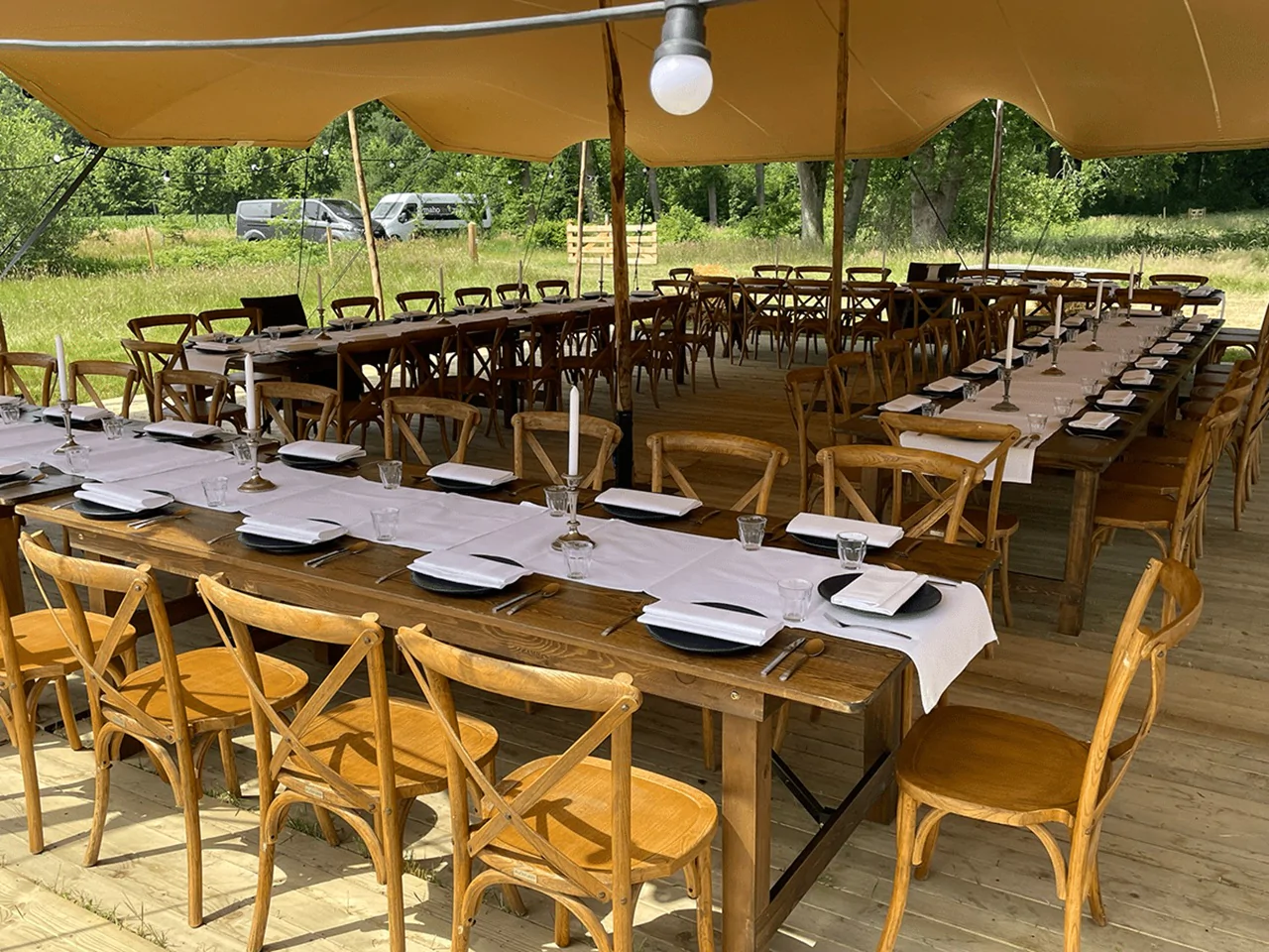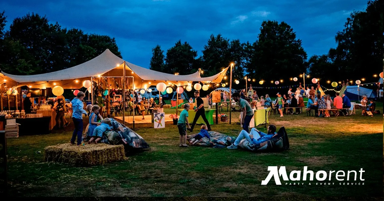 MAHOrent denkt graag met jullie mee om de perfecte sfeer te creëren. Van een romantische ceremonie op locatie tot een complete festival bruiloft of een bruiloft in eigen tuin. Denk aan stretchtenten onder de sterren, live cooking, foodtrucks, entertainment en sfeervolle aankleding. Met één bedrijf dat alles regelt – van catering en tenten tot meubilair en sanitair – hebben jullie één contactpersoon en één overzichtelijke rekening.